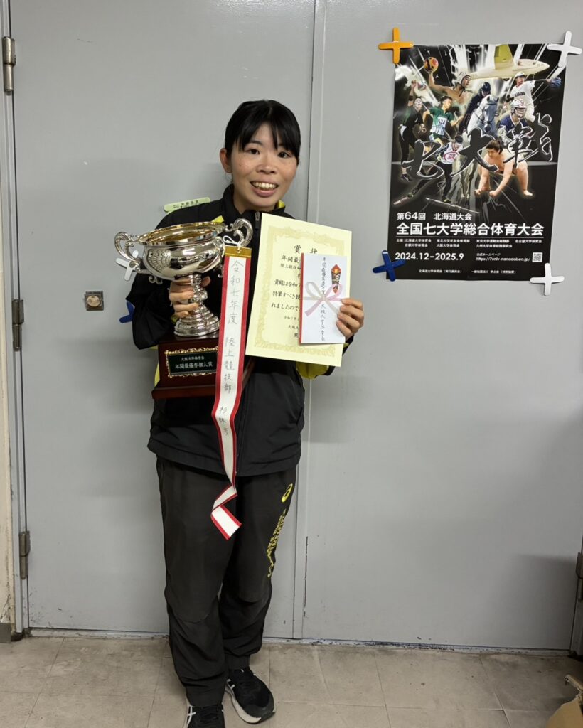 杉林選手は、日本選手権女子20km競歩において第5位、西日本インカレ女子10000m競歩において第1位という優秀な成績を収めました。